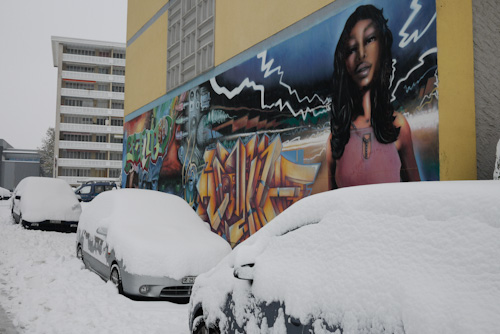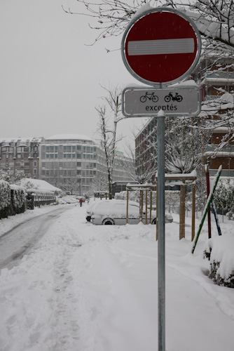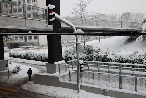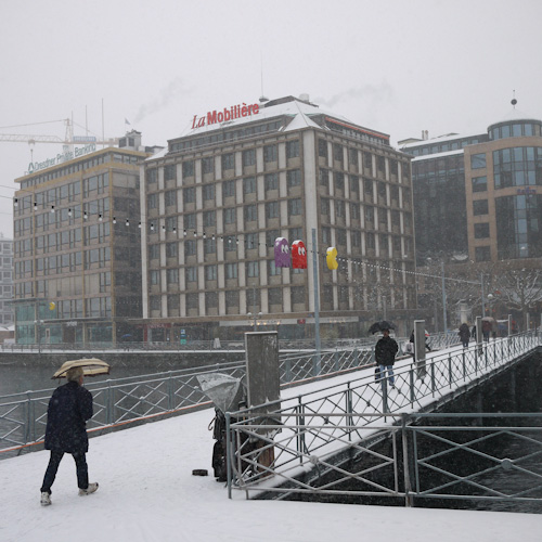 Geneva is covered in snow. Starting last weekend and continuing to today, Geneva is being blanketed with snow. From yesterday’s prediction of 20cm to today’s latest dump, there’s probably about 50cm on the ground. As people keep telling me, it’s abnormal for Geneva, which sits in a valley, to get such a big dump of snow, especially early on in the winter season. An “Orange” alert was declared, bus and tram routes and schedules were disrupted, and the Geneva airport was closed till 2pm today. On top of that, more snow is expected. I spent most of my evening last night walking home because traffic was at a standstill – after a couple of failed attempts at riding the bus and tram, it was just easier to walk. At some point in the next couple of days the alert will be gone, but the snow (and slush) will still cover the streets… will Geneva, its sidewalks and streets be ready for ice and the havoc it brings? Aside from the craziness from snow and ice, I love the fact that it’s beautiful (and quiet) in the city… dress warmly and a snow-covered urban landscape is a joy to walk through.