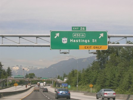 (Heading into downtown Vancouver. The North Shore mountains are in the background with Lions Peak covered in snow)